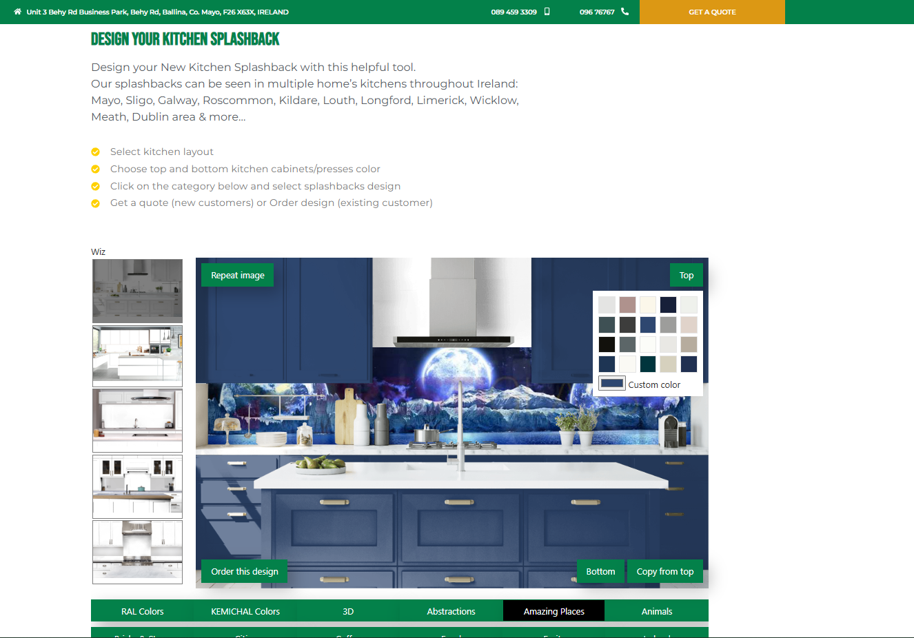 Interactive Splashback Designer: Use our online tool to visualize different colours and designs in a real kitchen setting.