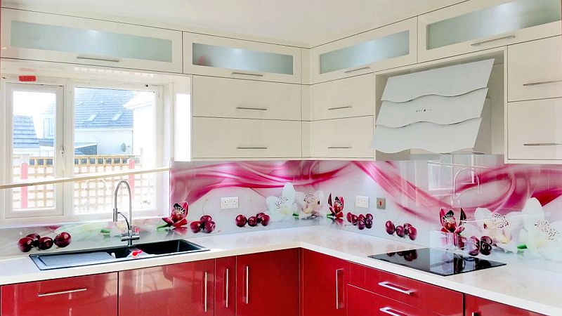 The print is directly on the glass using UV resistant technology with protection film at the back or white protecting paint. Our job is NOT laminate or label sticker advertised as image splashbacks.
